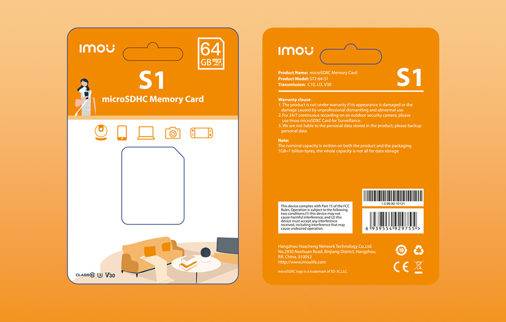 With the 64GB Imou ST2-64-S1 memory card, you can forget about the problems of running out of space. The C10/U3/V30 speed class guarantees lightning-fast data transfer with read speeds of up to 95MB/s and write speeds of up to 38MB/s. This means you can record 4K-quality videos, take RAW-format photos and enjoy many other advanced multimedia features without any hassle.