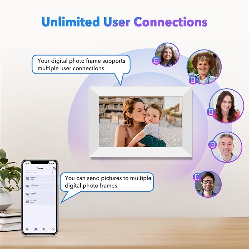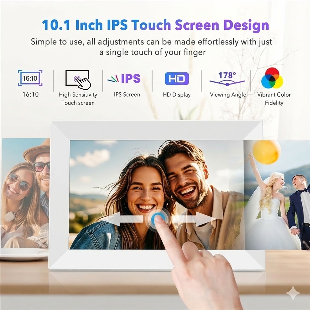 This 10.1" WiFi Digital Photo Frame delivers crisp display quality, smart wireless sharing, generous storage and multi-user connectivity—making it the perfect modern solution for families, offices or as a thoughtful gift.