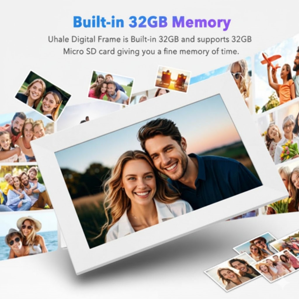 The frame includes 32GB of internal storage, enough for thousands of photos. Need more space? Insert a Micro SD card for additional storage and easy file management.