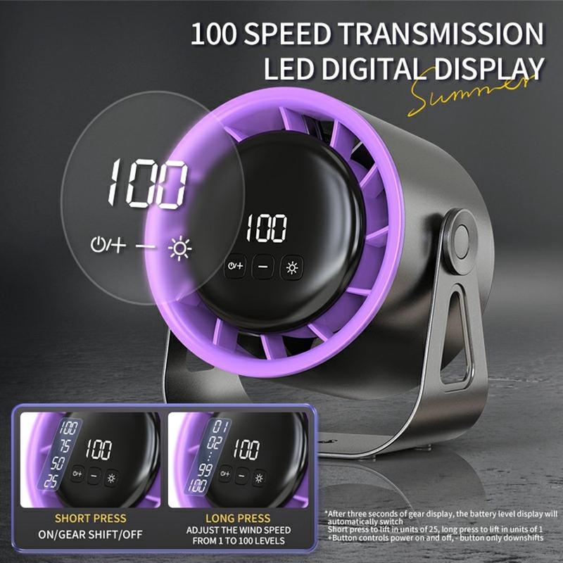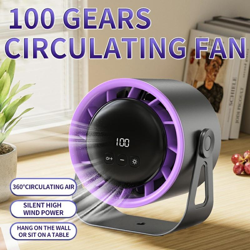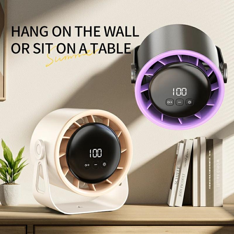 100-Speed Adjustable Desk & Wall-Mounted Fan with Digital Display and Ambient Light