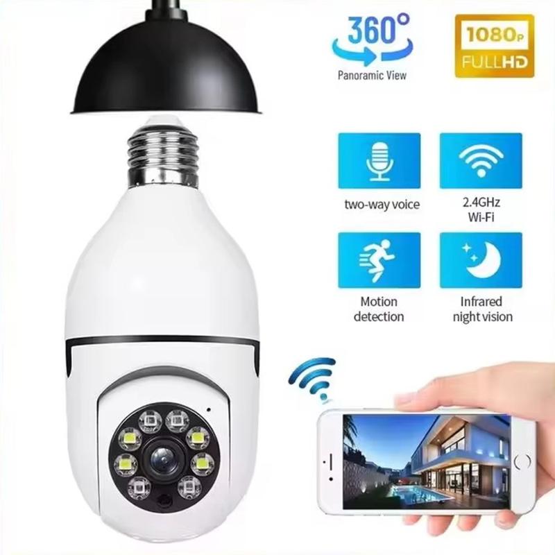 Upgrade your home monitoring setup with this E27 Bulb Camera, a smart and space-saving security solution designed to fit directly into a standard E27 light socket. With 1080P Full HD video, 360 panoramic coverage, remote pan-tilt control, and built-in night vision, it gives you a practical way to watch over rooms, entrances, hallways, garages, and other indoor areas without the look of a traditional camera. Its discreet bulb-style design makes installation simple while adding reliable everyday monitoring to your space.