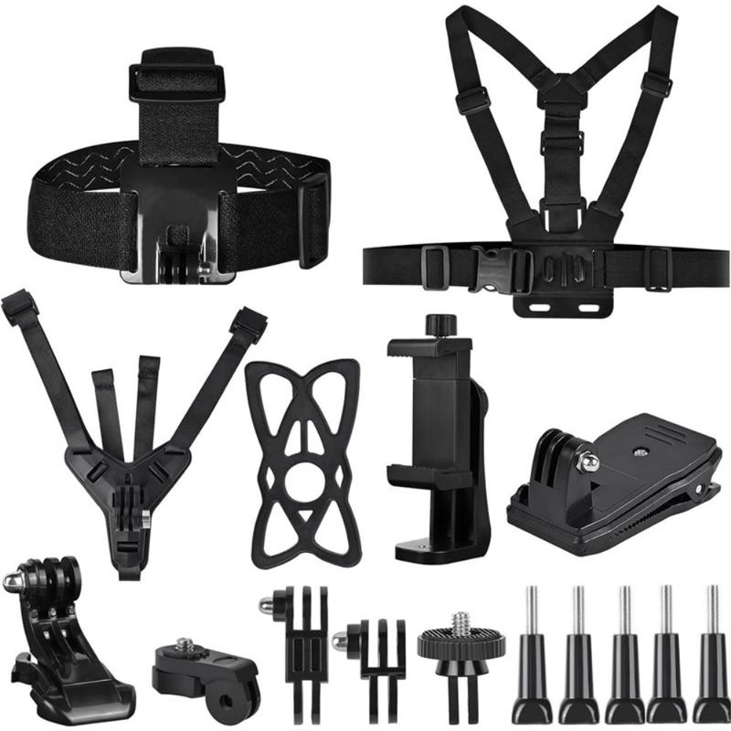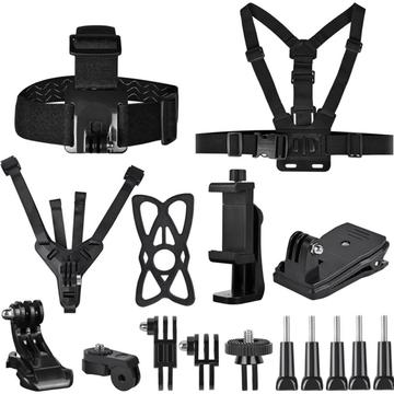 11-in-1 Action Camera Accessories Kit for GoPro - Head Strap, Chest Harness, Chin Mount, Backpack Clip and Phone Holder Set