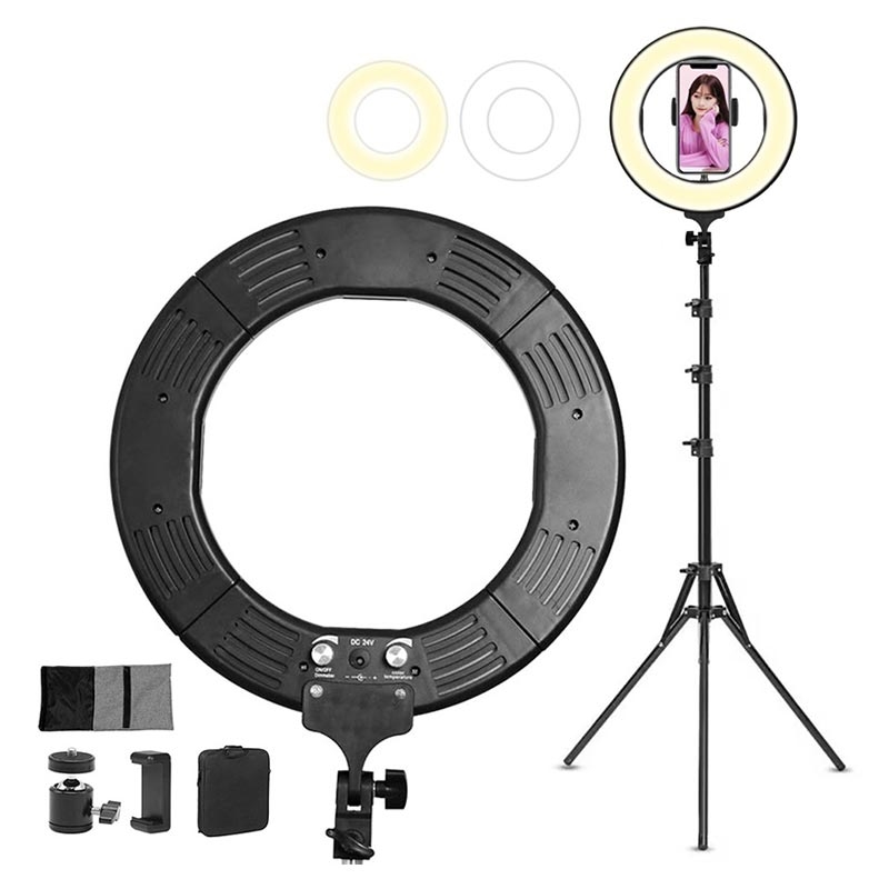 18" Dimmable Desktop LED Selfie Ring Light Fill-in Lamp Studio Photography Lighting with Phone Holder