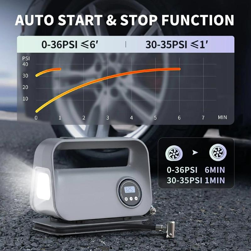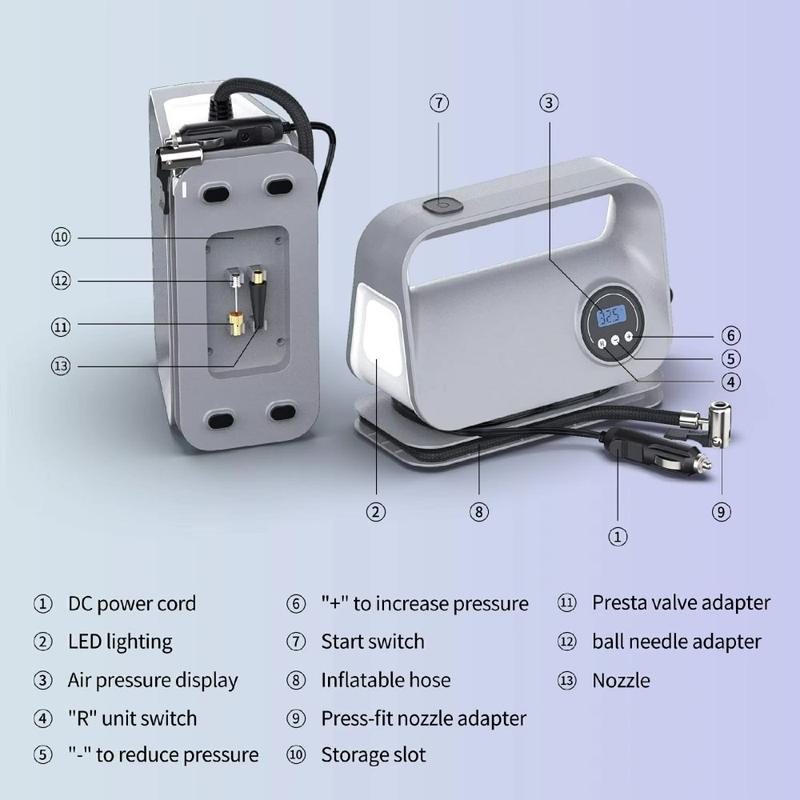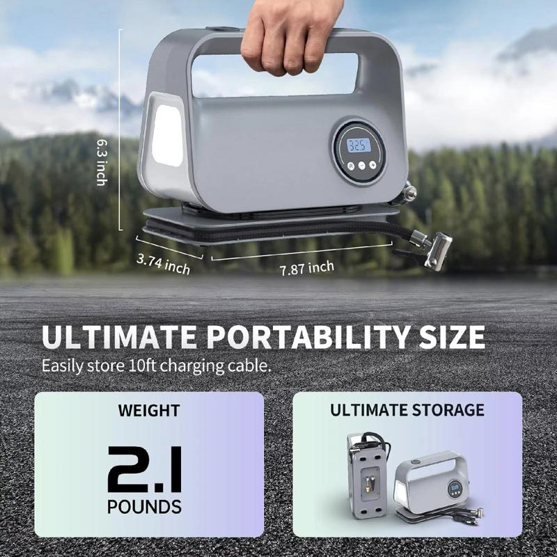 - Portable and lightweight – compact enough to store in your glove compartment or trunk, while powerful enough to handle multiple inflation tasks.