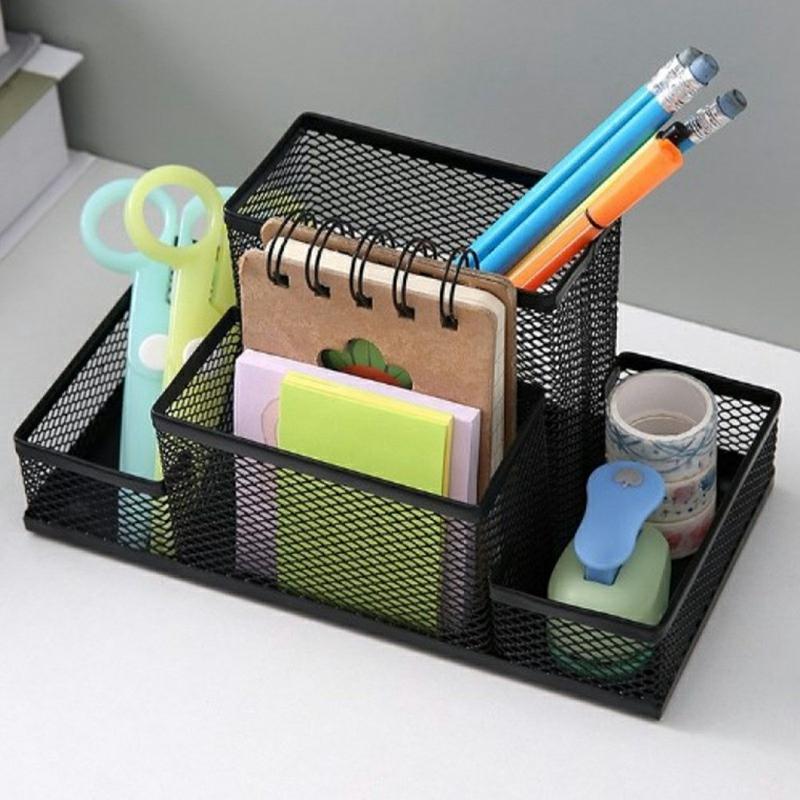 Its sturdy metal mesh outlasts plastic caddies, while the neutral black finish complements both modern and traditional décor. Light enough to move, strong enough for daily use - a simple upgrade that makes any workspace feel instantly more professional.