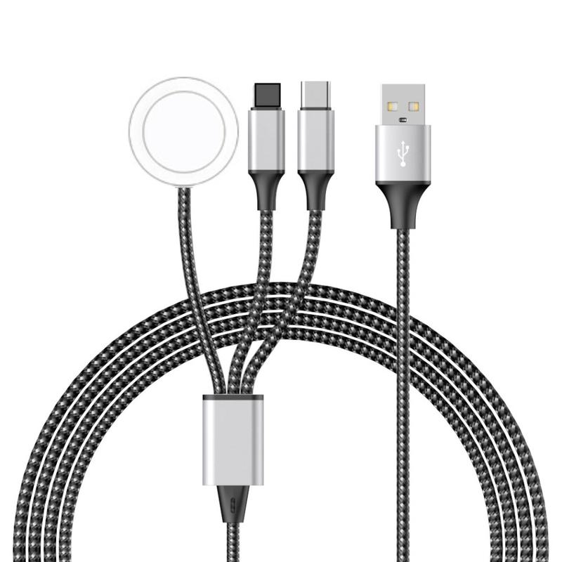 3-in-1 Braided Charging Cable - Type-C, Lightning, Apple Watch