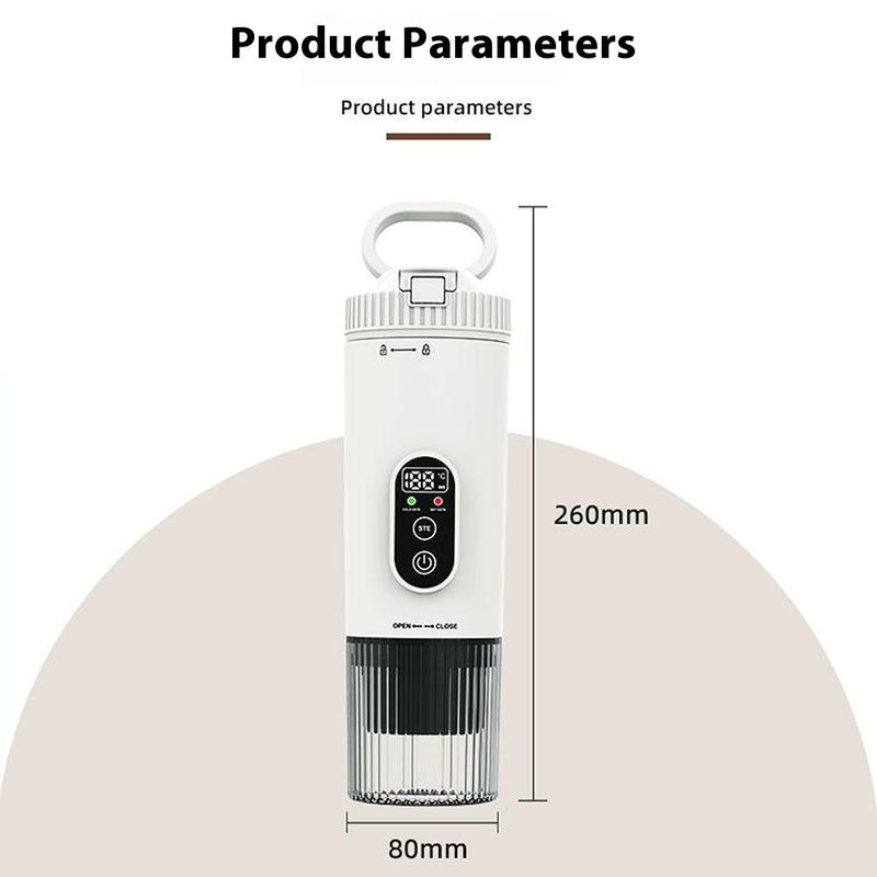 Enjoy barista-quality coffee anywhere with the portable espresso machine, a compact and wireless coffee maker designed for travel, outdoor adventures, and daily use. Featuring dual operation modes, it allows room temperature extraction for rich coffee flavors and heated extraction for quick, hot espresso on demand. With a 7500mAh rechargeable battery, this coffee maker delivers 4-5 uses in heated mode or over 200 uses in room temperature mode on a single charge. Built with durable ABS and 304 stainless steel, it withstands frequent use while delivering up to 21 bar of pressure for professional-quality extraction. Compact, lightweight, and USB rechargeable, it’s the perfect coffee companion for home, office, road trips, or outdoor activities.