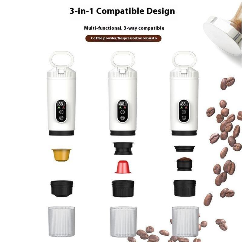 3-in-1 Portable Espresso Machine - Wireless Electric Capsule Coffee Maker with 7500mAh Battery for Car, Home & Outdoor - Compatible with Nespresso, DolceGusto capsules, coffee powder