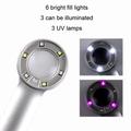 The magnifier includes 6 high-brightness lights: 3 white LED lights for clear illumination and 3 UV lights for special inspection needs. The push-type switch allows easy toggling between white light and purple UV light, adapting to different viewing scenarios.