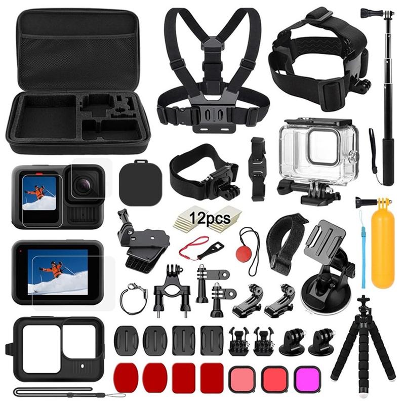This complete accessories kit for GoPro Hero 13 Black is built for action filming, travel, and everyday protection. It includes essential mounts and straps for capturing stable POV shots, plus protective gear to help keep your camera safe from scratches, dust, and splashes. With a waterproof case, multiple mounting options, and tempered films for the front screen, rear screen, and lens, you’re ready for everything from cycling and hiking to water sports and vlogging.