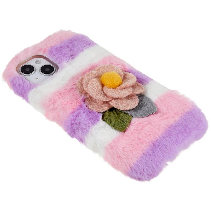 Zimní chlupaté pouzdro na telefon iPhone 14 Plus, ochranný kryt proti poškrábání s 3D plyšovou panenkou