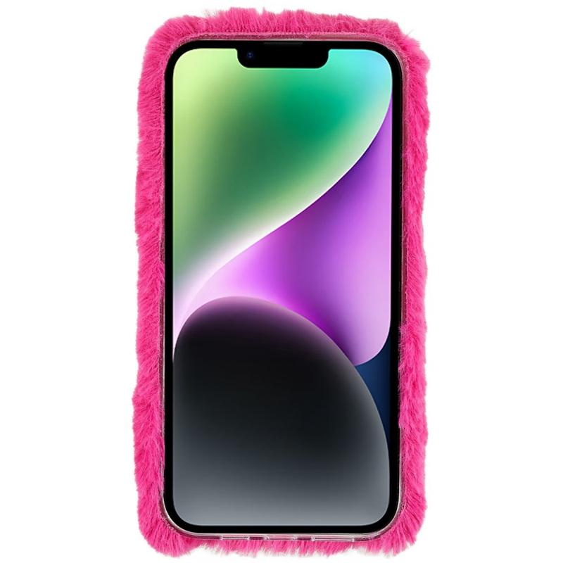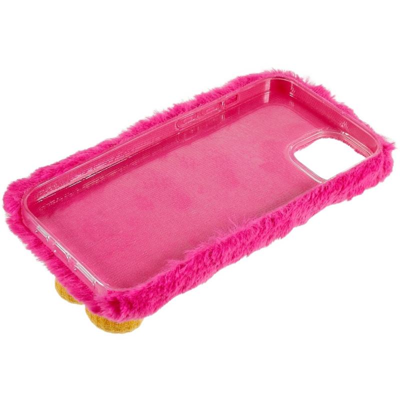 Zimní chlupaté pouzdro na telefon iPhone 14 Plus, ochranný kryt proti poškrábání s 3D plyšovou panenkou