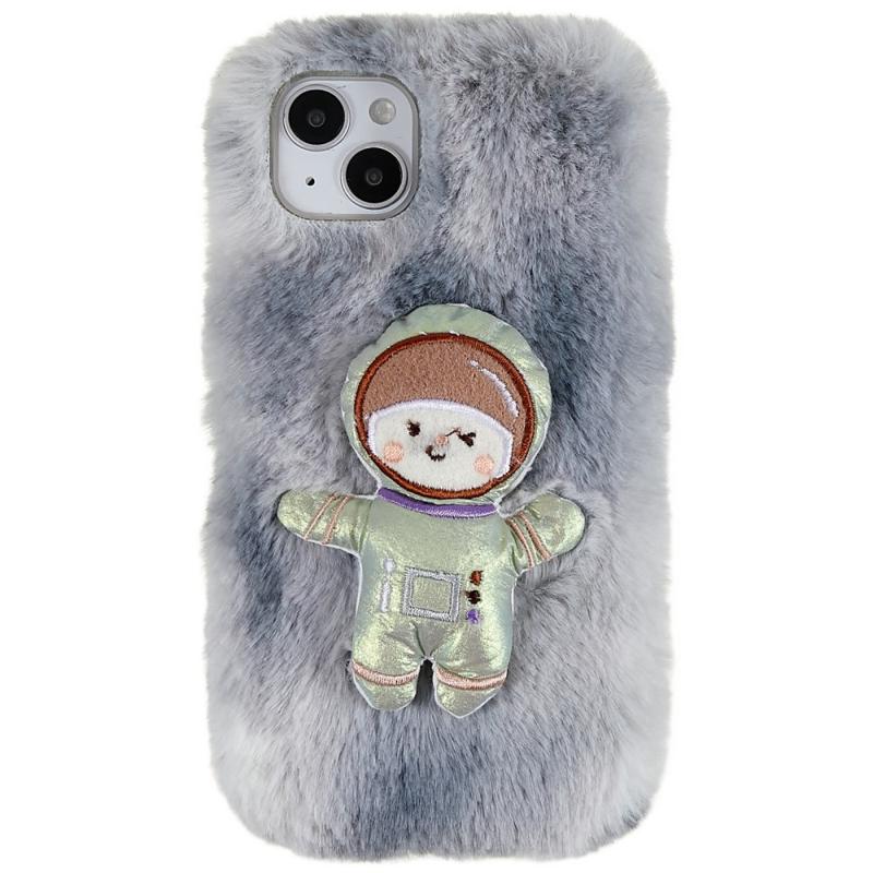 Zimní chlupaté pouzdro na telefon iPhone 14 Plus, ochranný kryt proti poškrábání s 3D plyšovou panenkou