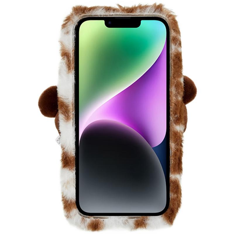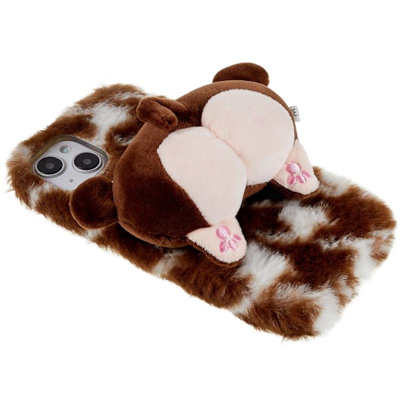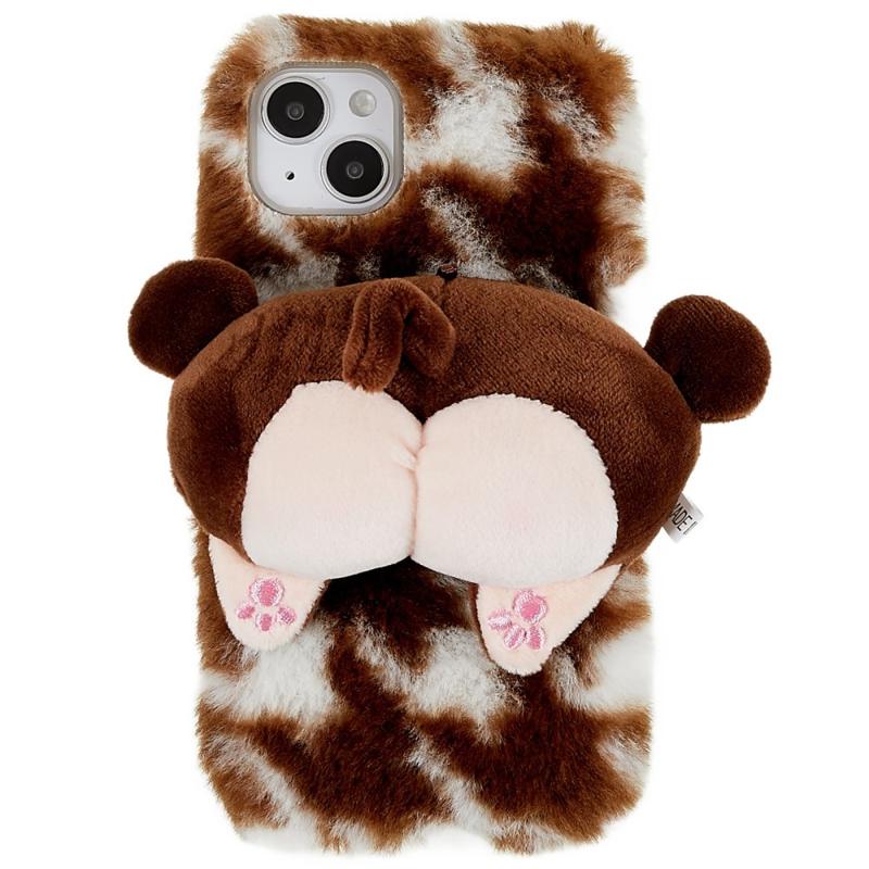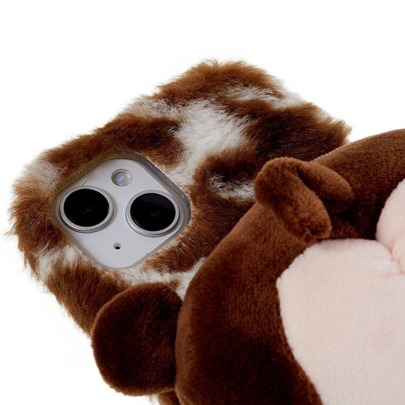 Zimní chlupaté pouzdro na telefon iPhone 14 Plus, ochranný kryt proti poškrábání s 3D plyšovou panenkou