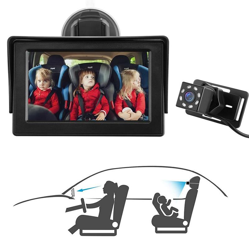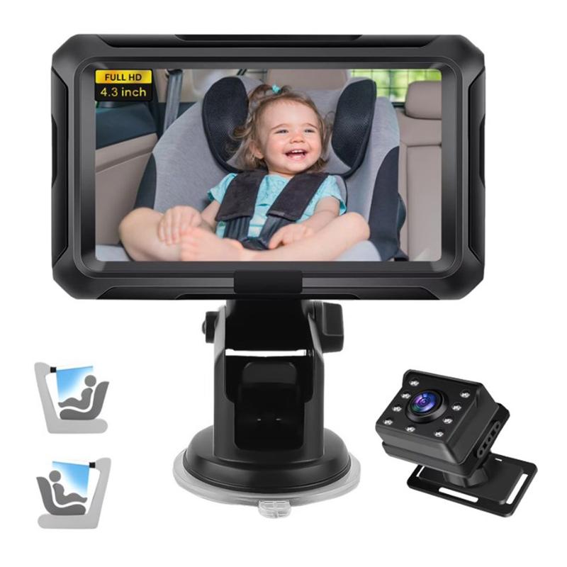4.3-Inch HD 1080P Car Baby Monitor - Wide-Angle Night Vision Camera with 360 Rotation for Rear Seat Safety