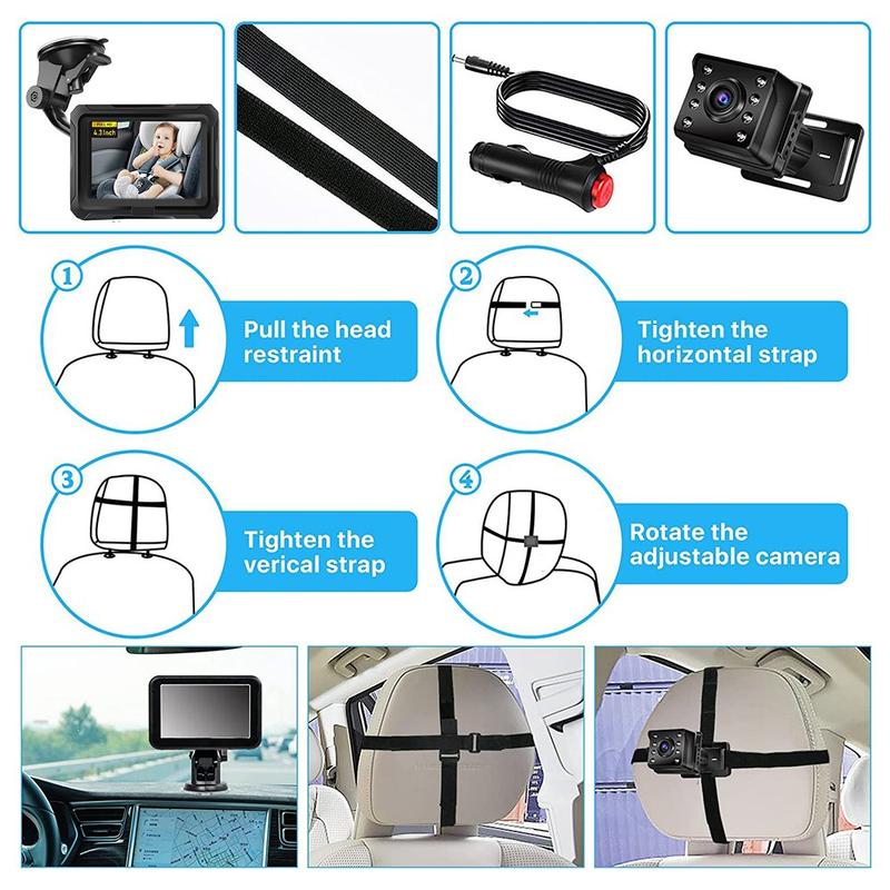 Drive with peace of mind while keeping an eye on your little one using the 4.3-Inch HD 1080P Car Baby Monitor. This smart safety accessory features a sharp high-definition camera with 360° rotation and a wide 150° viewing angle, letting you watch your child clearly without turning your head. With upgraded night vision, vivid daytime clarity, and simple installation, it’s designed to enhance both safety and convenience on every journey.