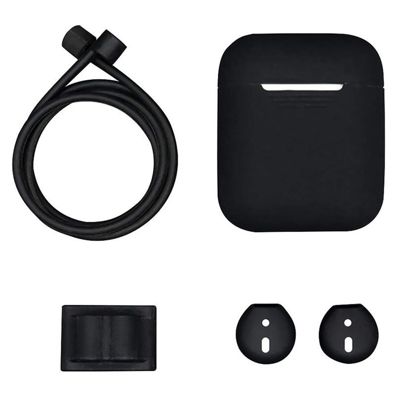 sada silikonových doplňků 4-in-1 pro Apple AirPods, AirPods 2-Silikonové pouzdro, popruh na krk, držák na sluchátko, kryt uší