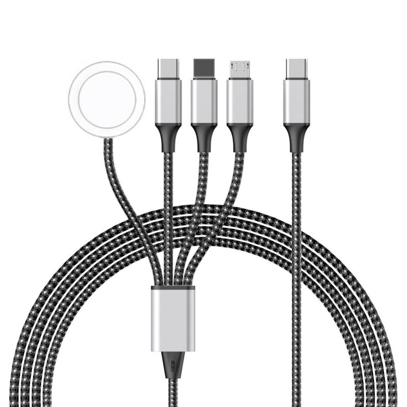 4-in-1 Braided Charging Cable - Type-C, Lightning, Micro USB, Apple Watch