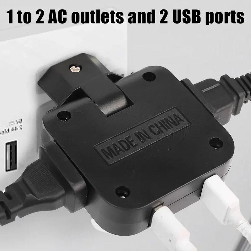 Expand a single wall socket into a practical charging station with this compact 4-in-1 power adapter. Designed for home, office, and travel use, it provides two AC outlets for appliances plus two USB-A ports for charging phones, tablets, and other USB devices. The 180 rotatable EU plug allows the adapter to fit comfortably behind furniture or in tight spaces, making it a convenient solution where traditional power strips cannot fit.