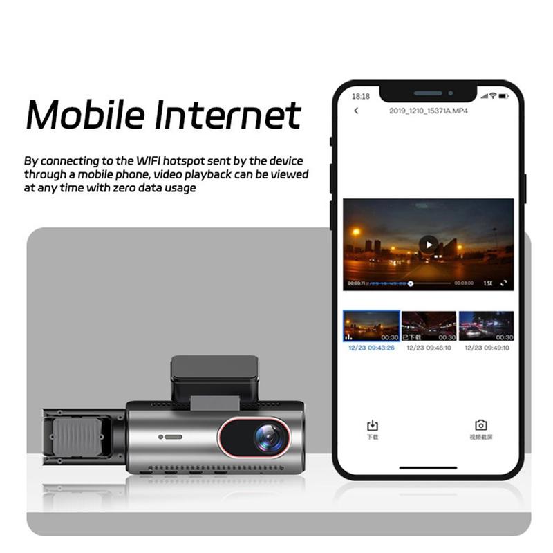 4-Inch Dual-Lens WiFi Dash Cam - 1080p Road-&-Cabin Night-Vision Recorder with 170° Super-Wide Front Lens
