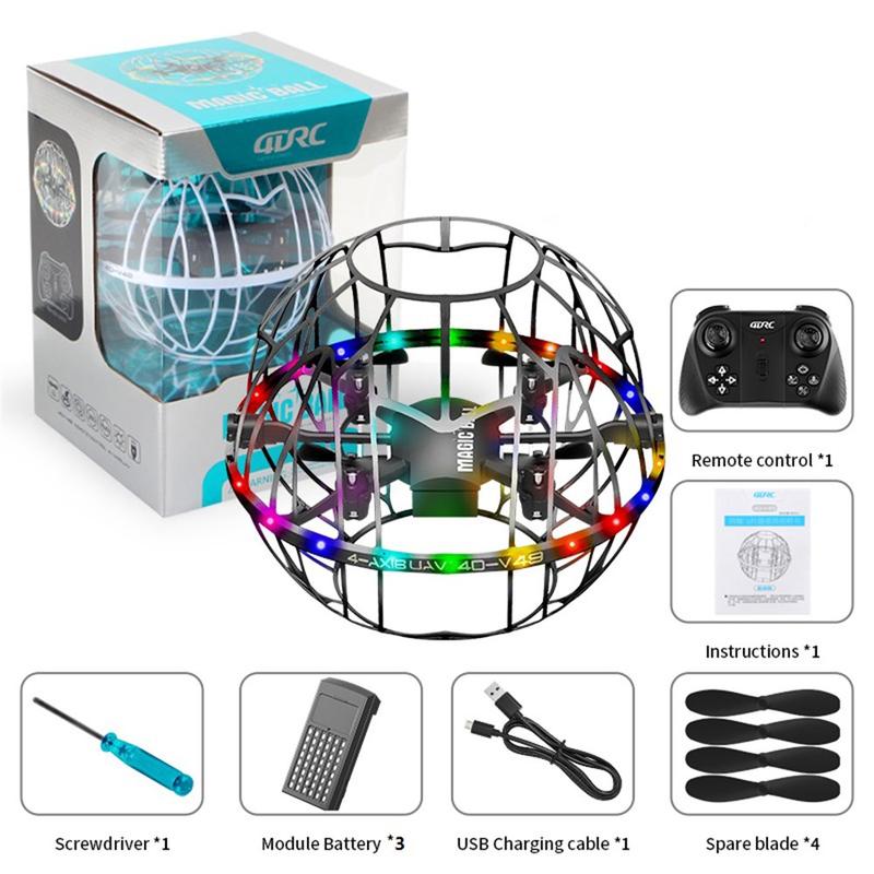 4DRC 4D-V49 Football-Shape Drone - Gesture Control Quadcopter with LED Lights, Obstacle Avoidance & 3 Batteries