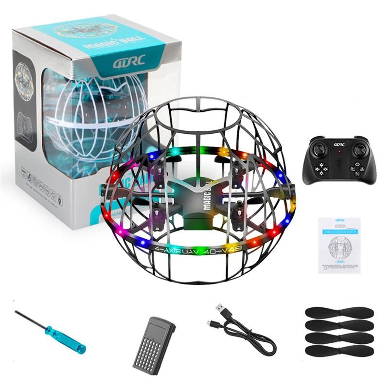 The 4DRC 4D-V49 football-style drone is designed for safe, entertaining flights indoors and outdoors. Its spherical protective cage surrounds the propellers, helping reduce impact risk while making it suitable for children and family play.