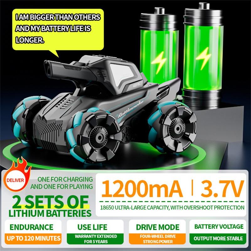 4DRC 4D-Y8 RC Tank Car / 4WD Off-Road Water Bullet Shooter with Dual Control and Two Batteries - 1200mAh