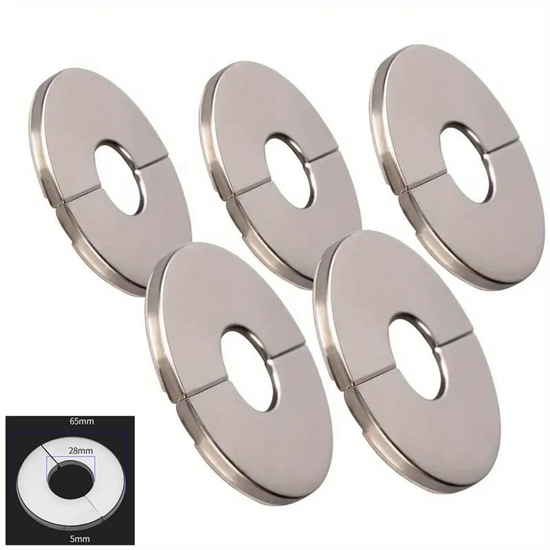 5 Pcs. Stainless Steel Round Wall Hole Flange Cover - Self-Adhesive Faucet & Pipe Decorative Plate