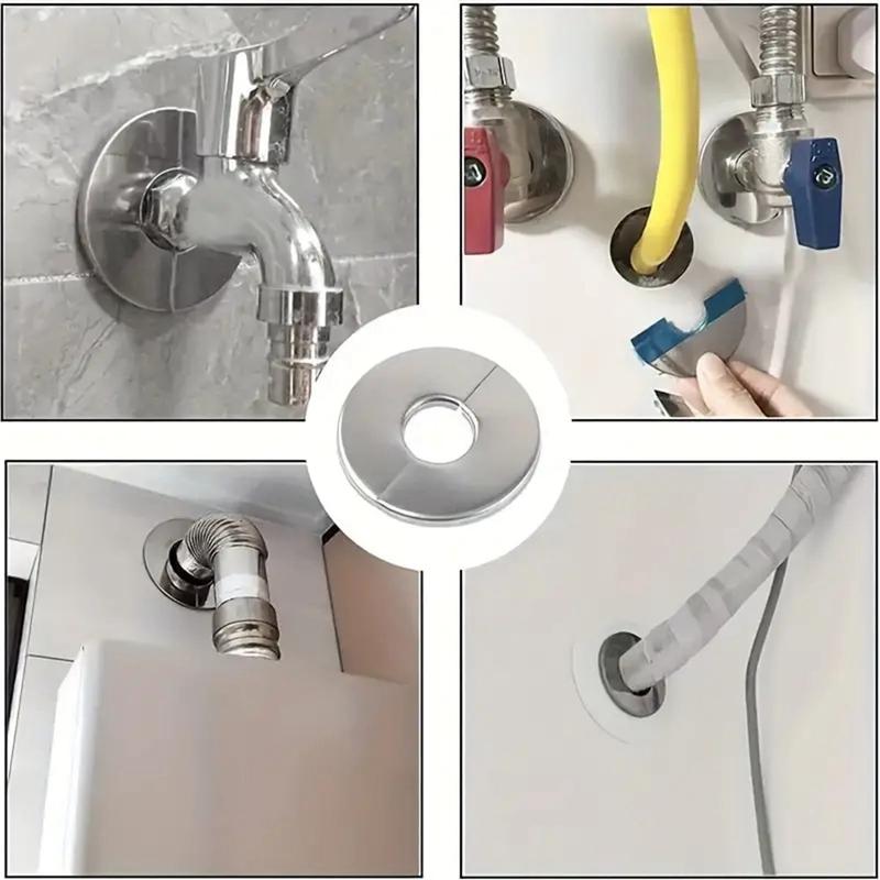 Conceal unsightly wall openings around pipes and faucets with these stainless steel round flange covers. Designed for quick, tool-free installation, the strong self-adhesive backing attaches directly over the hole to create a clean, polished look. Made from durable, rust-proof stainless steel, these covers resist high temperatures, maintain their shape, and offer long-lasting performance in kitchens, bathrooms, and utility areas.