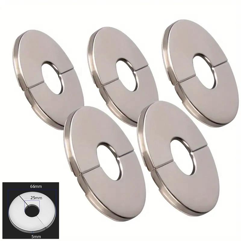 5 Pcs. Stainless Steel Round Wall Hole Flange Cover - Self-Adhesive Faucet & Pipe Decorative Plate