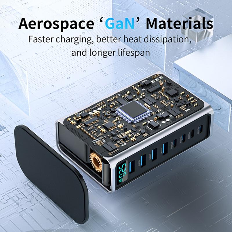 520W GaN 5.0 Desktop Charging Station with Digital Power Display - 8 Ports (4x USB-C up to 100W + 4x USB-A) Fast Charger, PPS/PD/QC