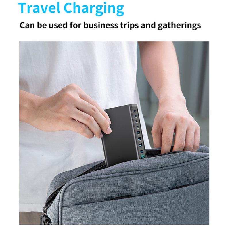- Home office powerhouse: Charge a USB-C laptop + phone + tablet + earbuds + power bank—all from one station
