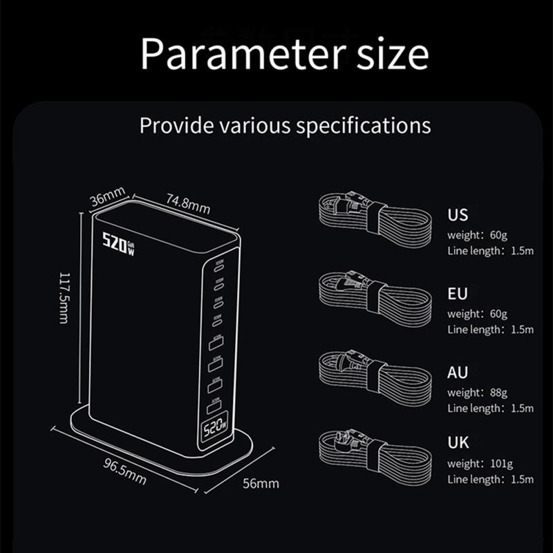 If you want a single, reliable charging solution that can replace a pile of adapters, this is it. The 520W capacity and 8-port layout are made for people with lots of devices, while the digital display adds real usability—so you can quickly see what’s happening without guessing. It’s a practical upgrade for anyone who values a clean desk, fewer wall plugs, and fast charging across different device types.