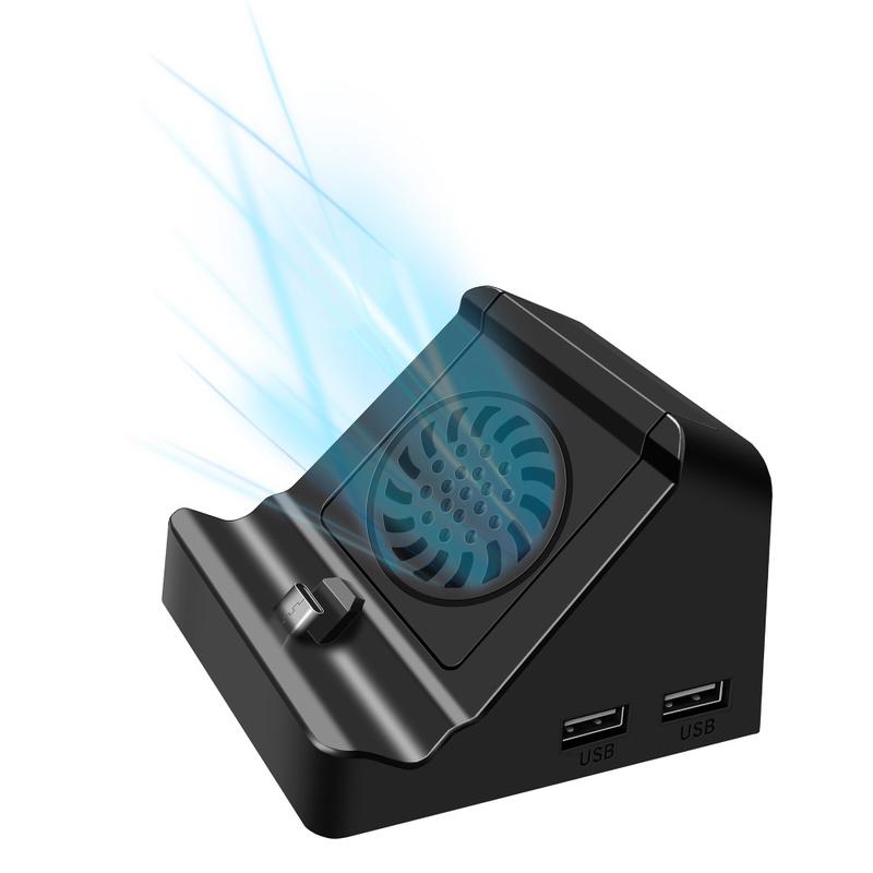 Výrobek je vybaven chladicím ventilátorem, rychle dvakrát stiskněte tlačítko přepínače, ventilátor se spustí, nasaje přirozený vítr zvenčí a poté pomůže hostiteli Nintendo Switch vychladnout