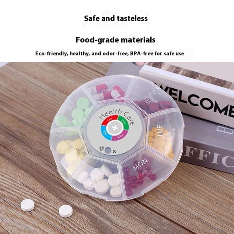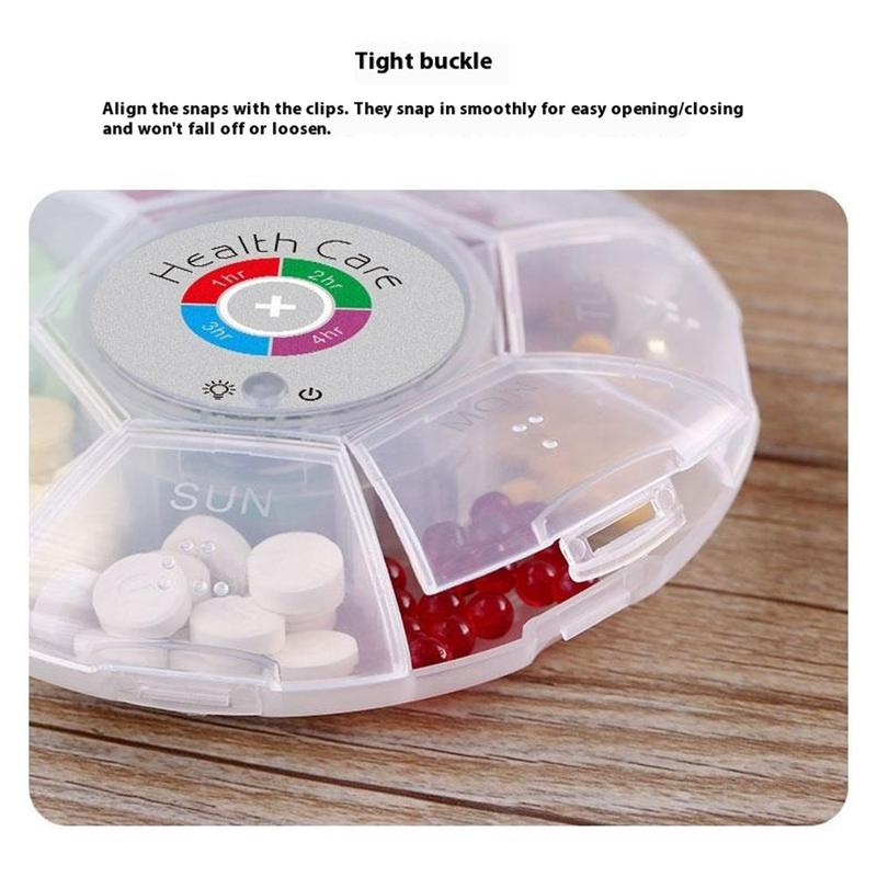Stay on top of every dose—even when you’re travelling. This circular, seven-compartment pill box pairs colour-changing LEDs with audible alerts, letting you programme up to five reminders at 1-, 2-, 3- or 4-hour intervals. Braille bumps and raised weekday icons keep the layout inclusive, while a moisture-proof, impact-resistant shell protects tablets in a handbag or carry-on.