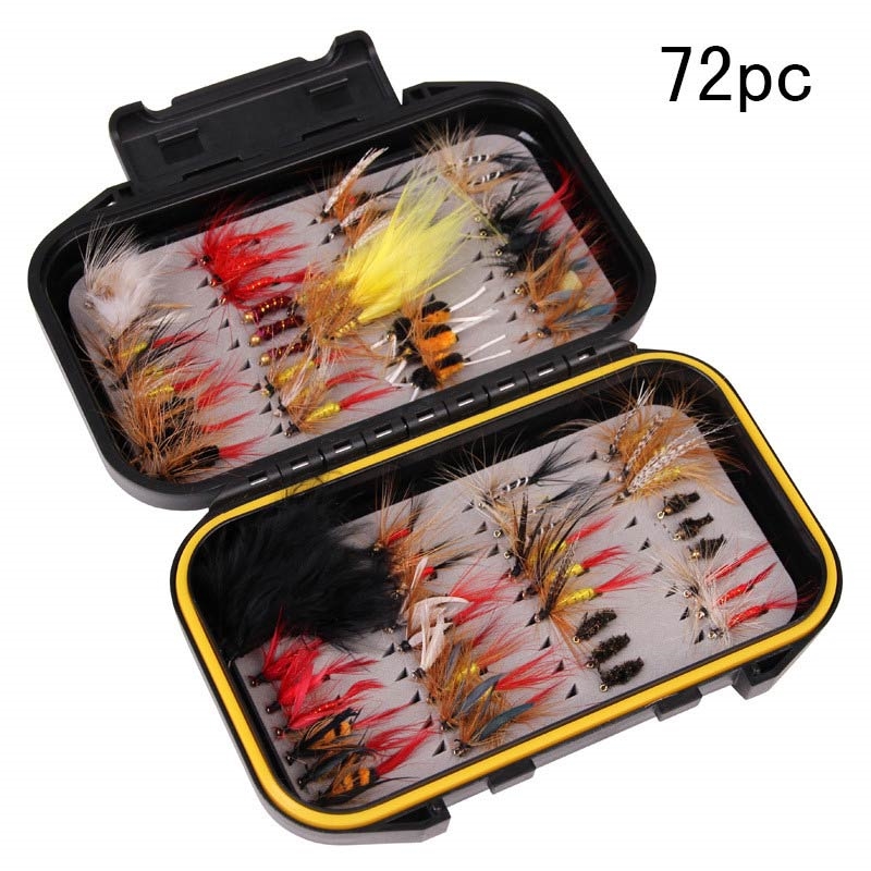 72-Piece Fly Fishing Bait Kit - Handmade Dry & Wet Flies, Nymphs, Streamers with Waterproof Storage Box