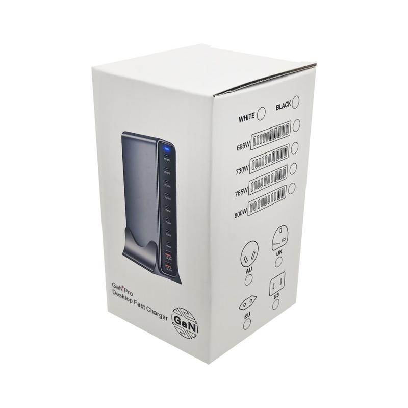 Power your entire desk from one compact hub with this 800W GaN desktop charging station. Designed for high-demand setups, it combines multiple USB-C and USB-A outputs so you can charge laptops, tablets, phones, and accessories at the same time-without a mess of separate adapters. GaN technology helps deliver high efficiency with lower heat generation, making it a smart choice for home offices, studios, repair benches, and shared charging areas.