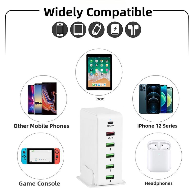 Charge smarter with the 818PD Multi-Port Charging Station, engineered to deliver reliable high-speed performance for all your devices. Supporting both PD20W and QC3.0 fast-charging protocols, this compact charging hub ensures that your smartphone, tablet, or accessories are powered quickly and safely wherever you are.
