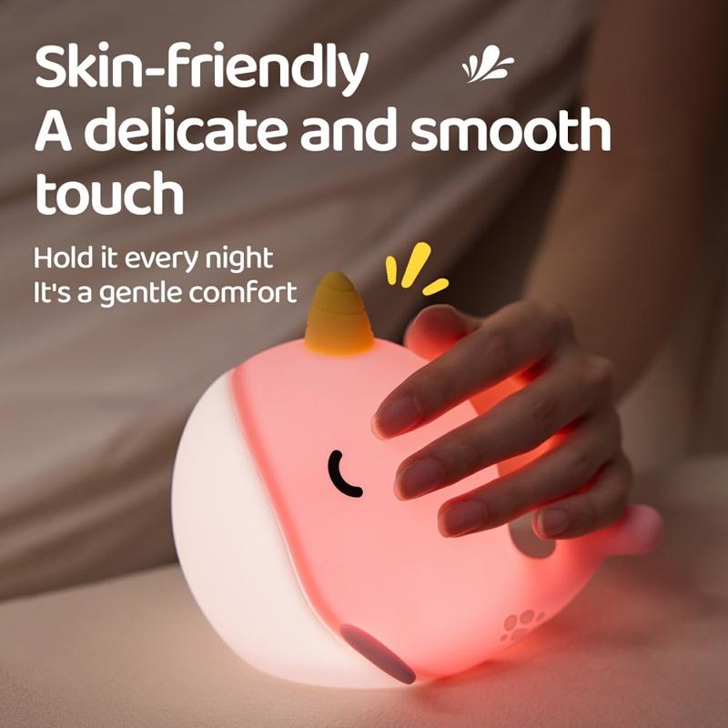 A044 Narwhal Silicone Night Light - Tap Control, USB-C Rechargeable & Soft Ambient Glow