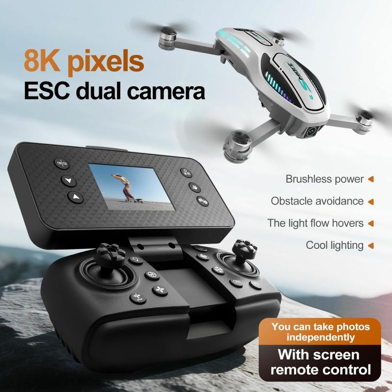 A118 Brushless Drone – Foldable RC Quadcopter with Optical Flow, Obstacle Avoidance, 90-degree Adjustable Camera & Detachable Screen Controller - 3 Batteries and 8GB Card