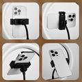 The phone clip mount is compatible with 4-7 inch cell phones. The phone clip is rotatable, so you can shoot horizontally and vertically