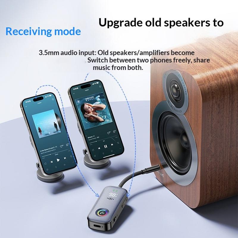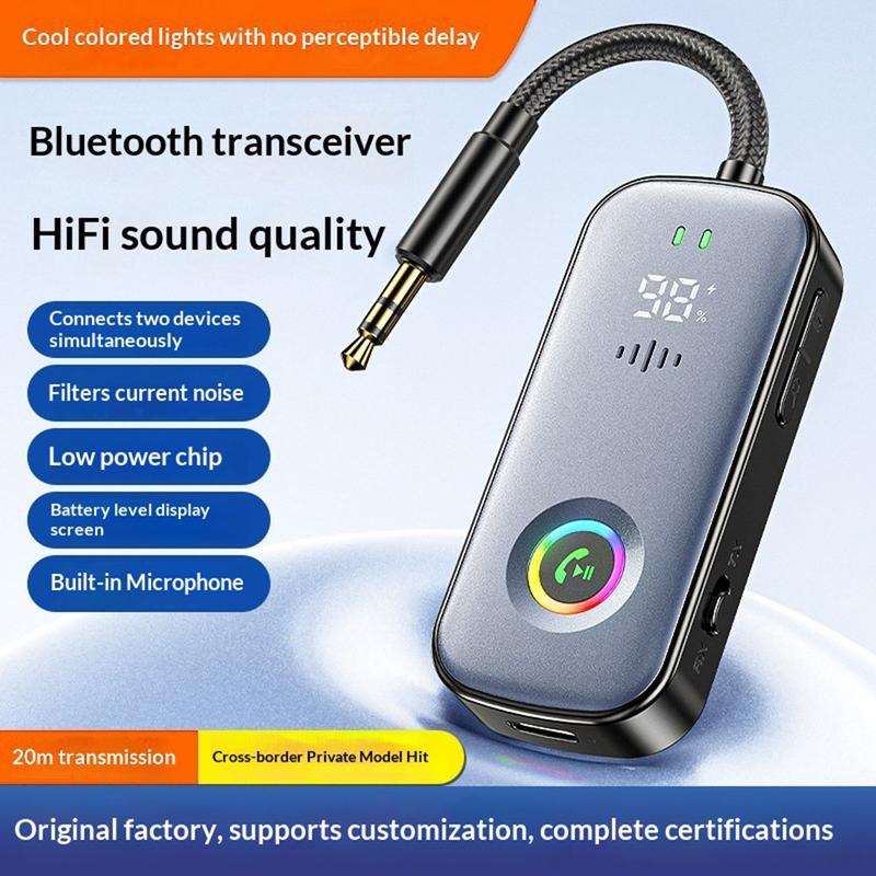 A6 Pro Car Bluetooth Audio Receiver and Transmitter / Bluetooth 5.2 AUX Adapter with RGB Lighting