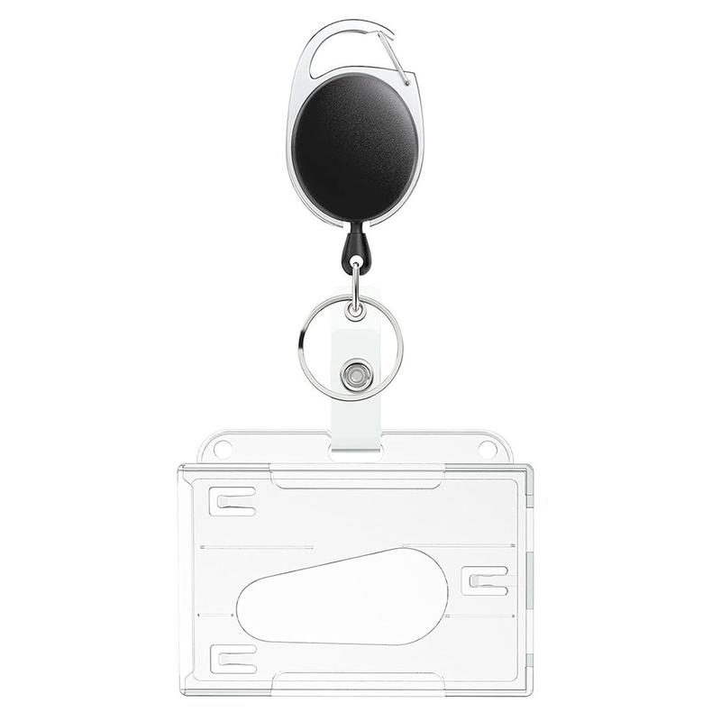 Clip, swipe and get on with your day. This retractable badge holder teams a scratch-proof polycarbonate card case with a smooth, zinc-alloy reel, keeping two cards secure, visible and ready for every checkpoint. The 60 cm pull cord springs back without a sound, and the integrated carabiner snaps to belt loops or bag straps in seconds.