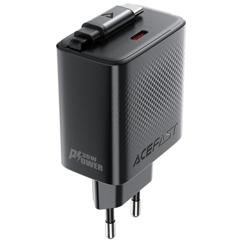 Acefast A110 30W GaN Charger with Retractable USB-C Cable and USB-C Port – EU Plug
