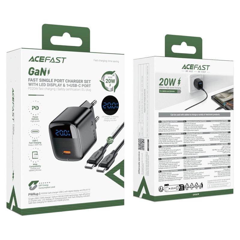 Acefast A113 20W GaN Charger with USB-C Cable and LED Power Display