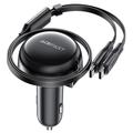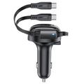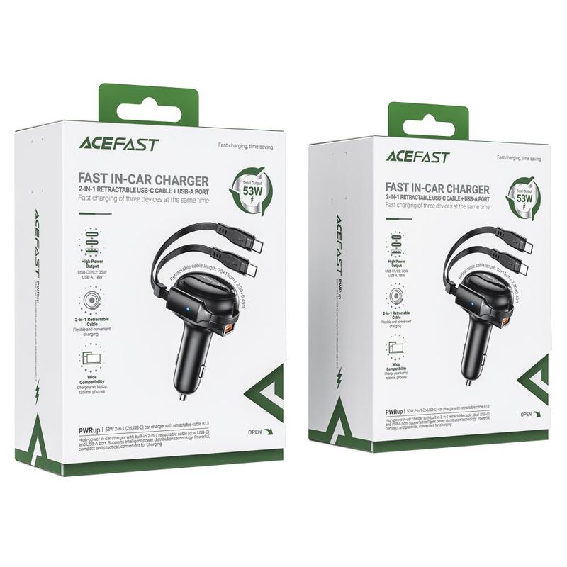 ACEFAST B13 53W USB Car Charger Adapter with 2 Type-C Retractable Charging Cable