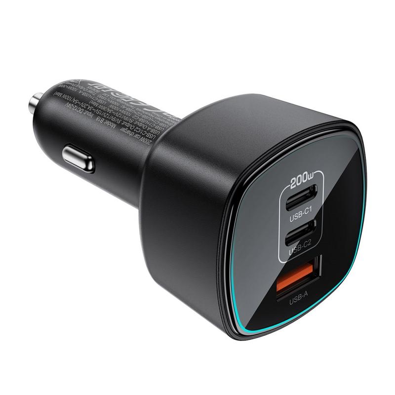 Acefast B18 200W Car Charger - Dual USB-C + USB-A Fast Charging Cigarette Lighter Adapter
