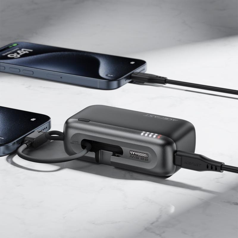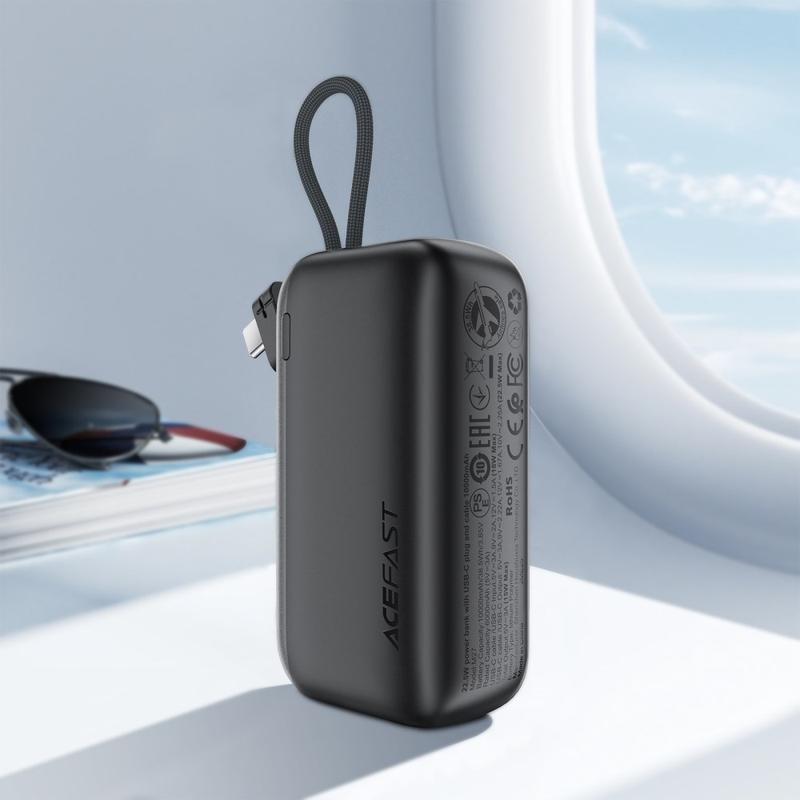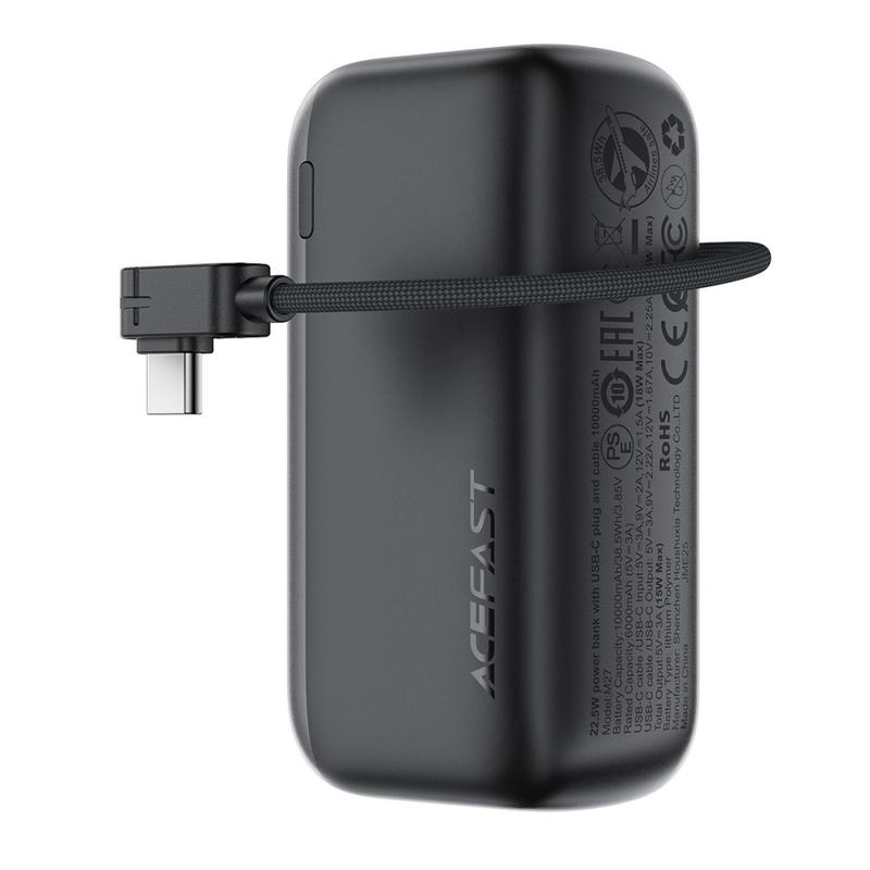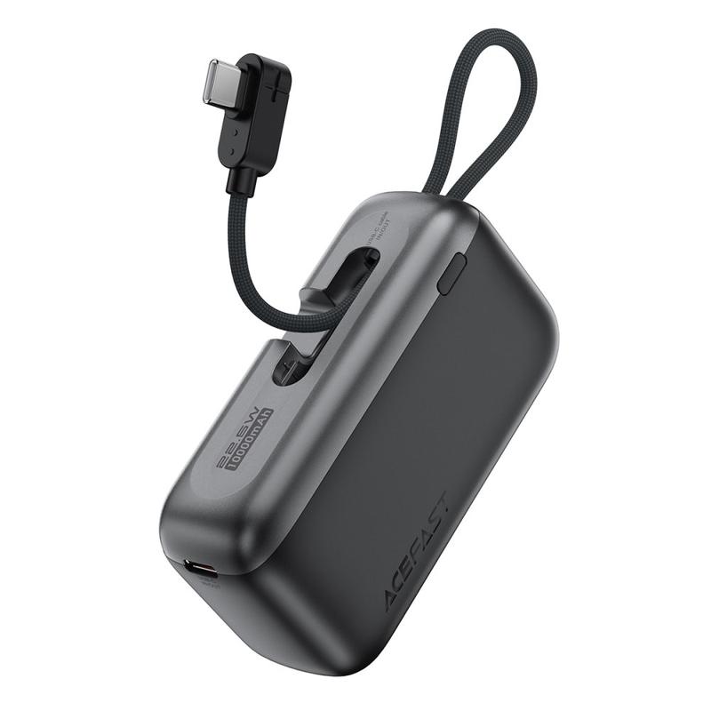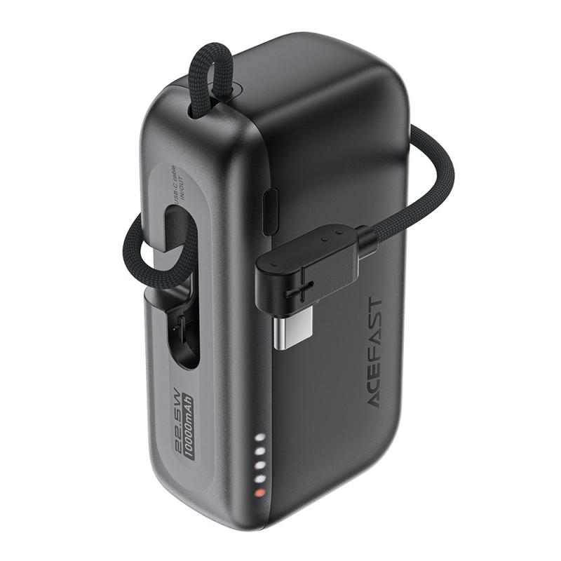 Acefast M27-10000 Mini 22.5 W Fast-Charge Power Bank - USB-C PD + Built-In Cable, LED Display