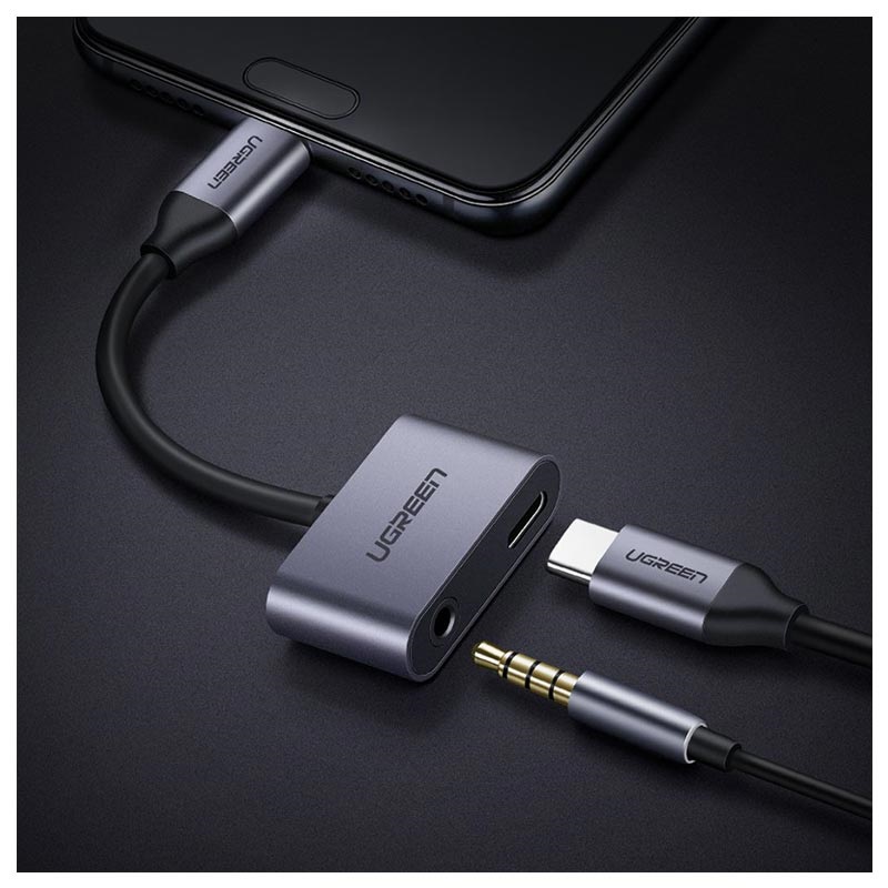• Ugreen 2-in-1 náboj a audio USB-C / USB-C a 3,5 mm adaptér-1.5a
