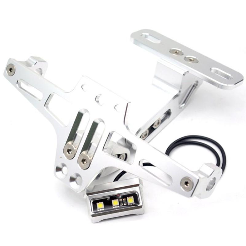 Adjustable CNC Aluminum Alloy Motorcycle License Plate Holder Bike Light Telescopic Bracket with LED Light - Silver